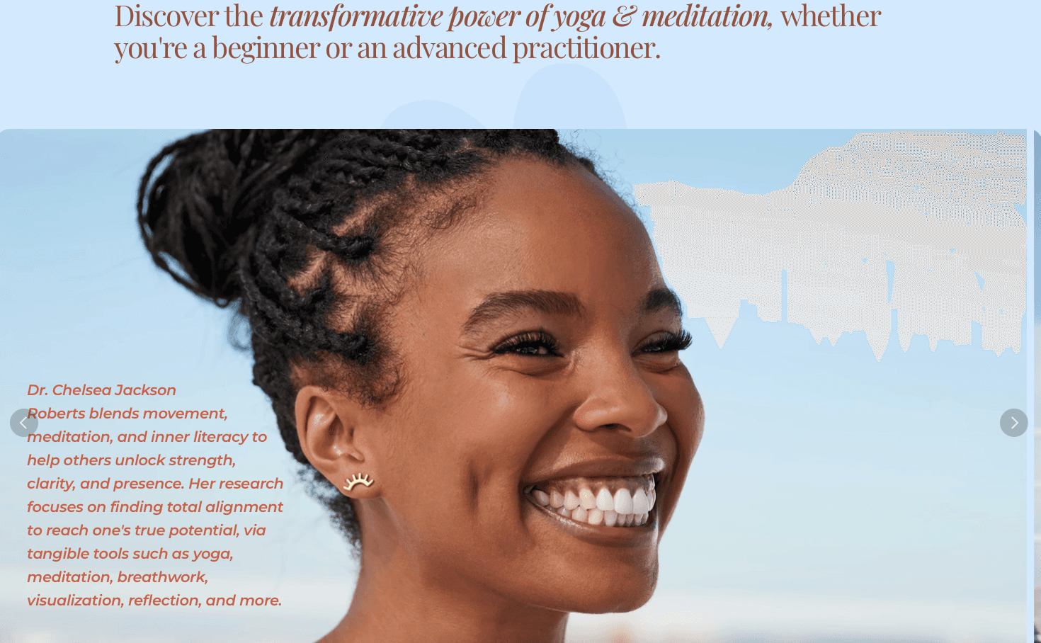 Completely redesigned and evolves the Chelsea Loves Yoga brand for Dr. Chelsea Jackson Roberts. I changed the style of the logo to represent peace and balance and changed the colors to not only be tranquil and light, but strong, which completely encapsulates the brand. The website was designed to be sleek and easy to navigate as well as highlighting Chelsea as more of a brand herself and not just a Peloton instructor.